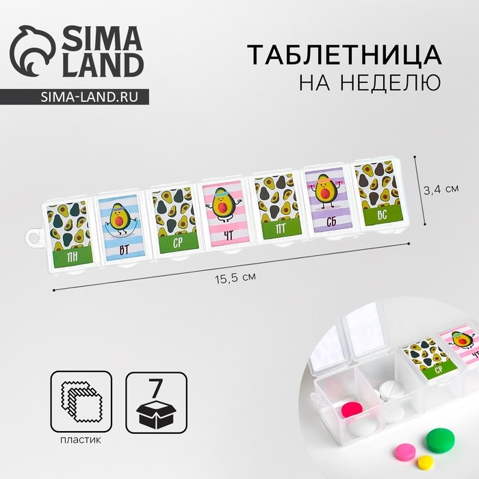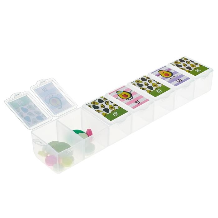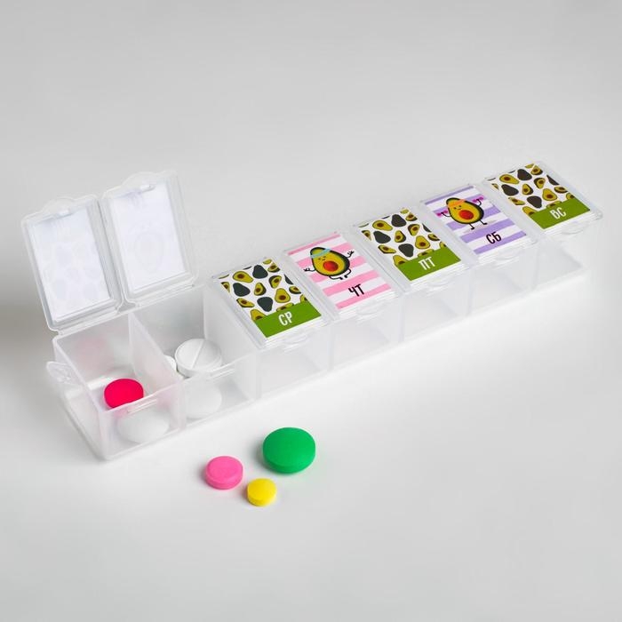 Таблетница «Авокадо», 7 секций, русские буквы, 15,5 х 3,4 см.