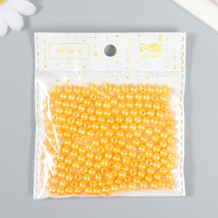Бусины для творчества пластик "Янтарный" набор 200 шт d=0,6 см
