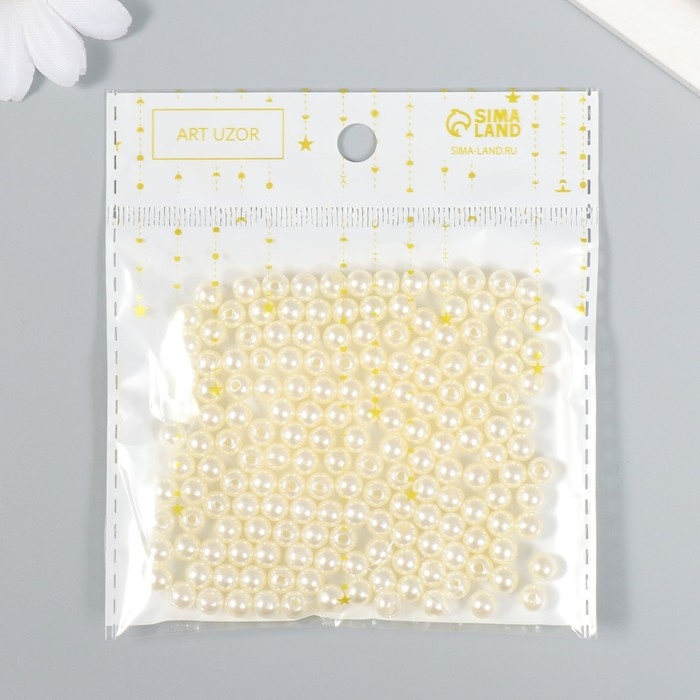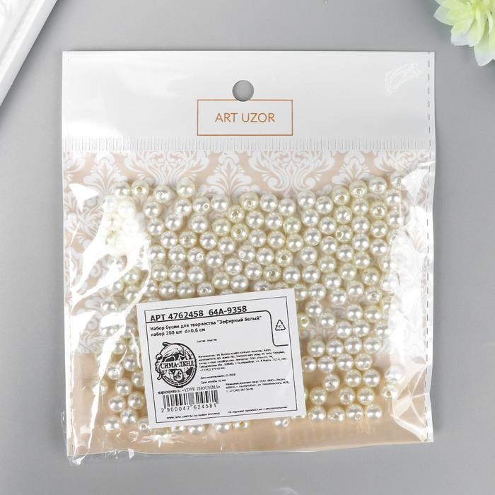 Бусины для творчества пластик "Зефирный белый" набор 200 шт d=0,6 см