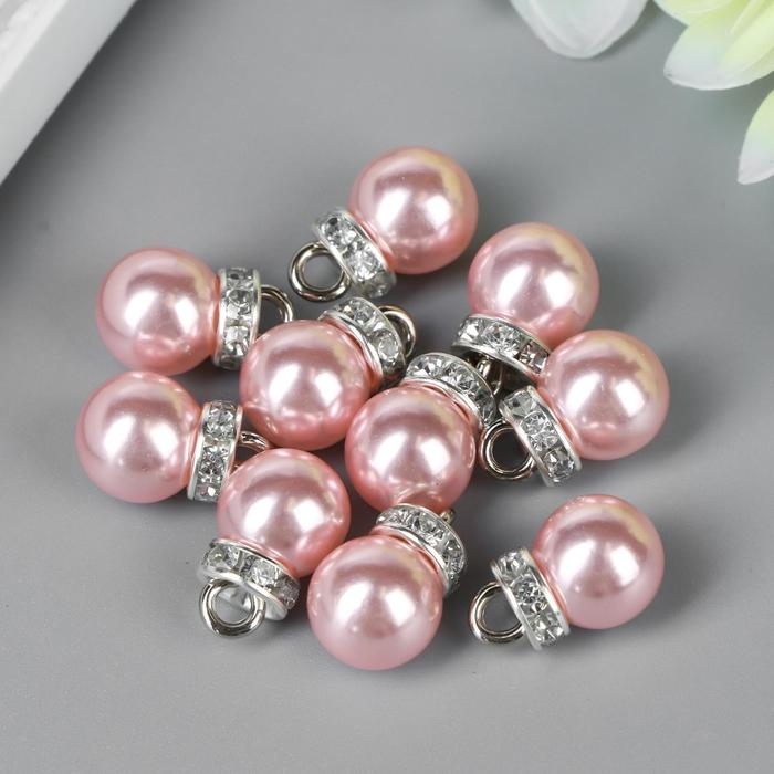 Декор для творчества пластик "Розовая жемчужина с петелькой" набор 10 шт 1х1,2 см