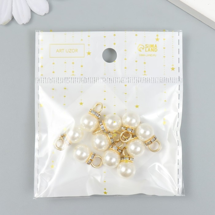 Декор для творчества пластик "Натуральная жемчужина с петелькой" набор 10 шт 1х1,2 см