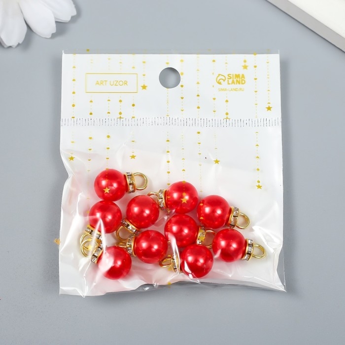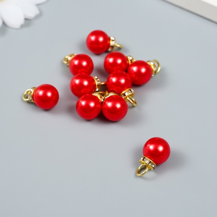 Декор для творчества пластик "Красная жемчужина с петелькой" набор 10 шт 1х1,4 см