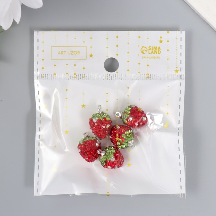 Декор для творчества пластик "Клубничка с петелькой" набор 5 шт 1х1,4 см