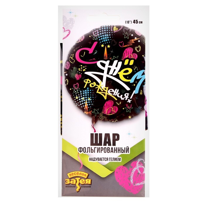 Шар фольгированный 18" «С днём рождения», граффити, сердца и звёзды