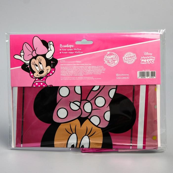 Букет из шаров фольгированных "Happy Birthday", набор 5 шт, Минни Маус, 4 сердечка, единичка
