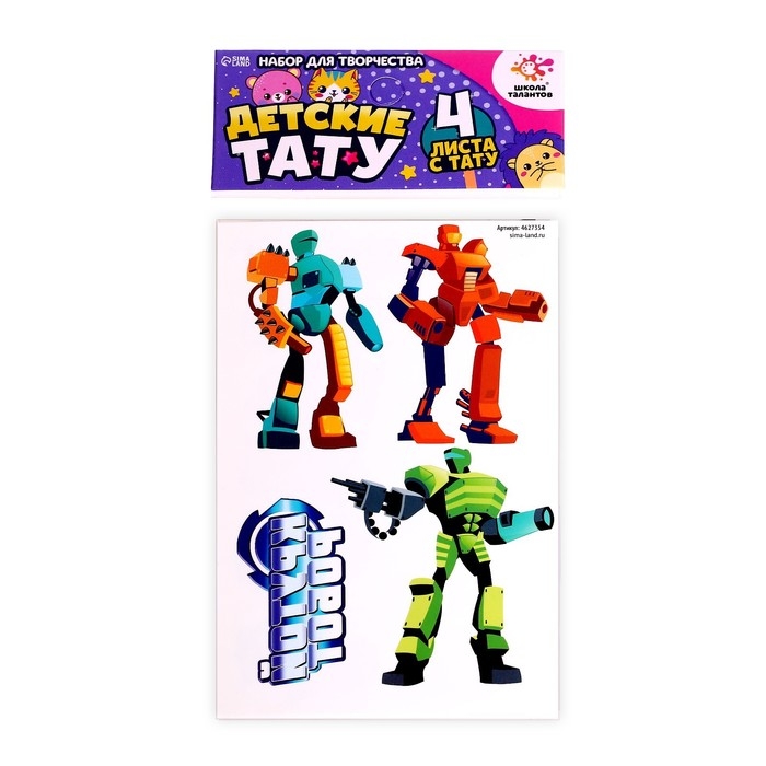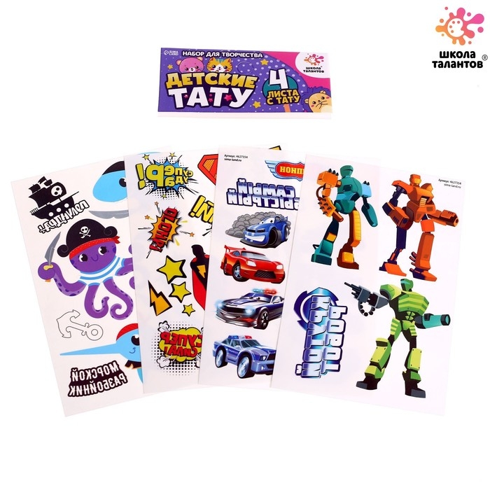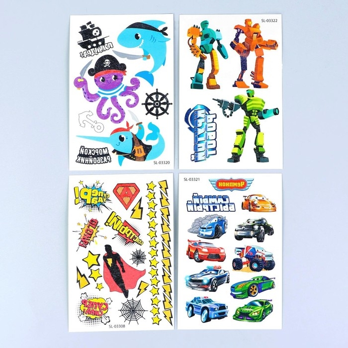 Набор детских татуировок, 4 шт.: машинки, пираты, роботы, супергерои
