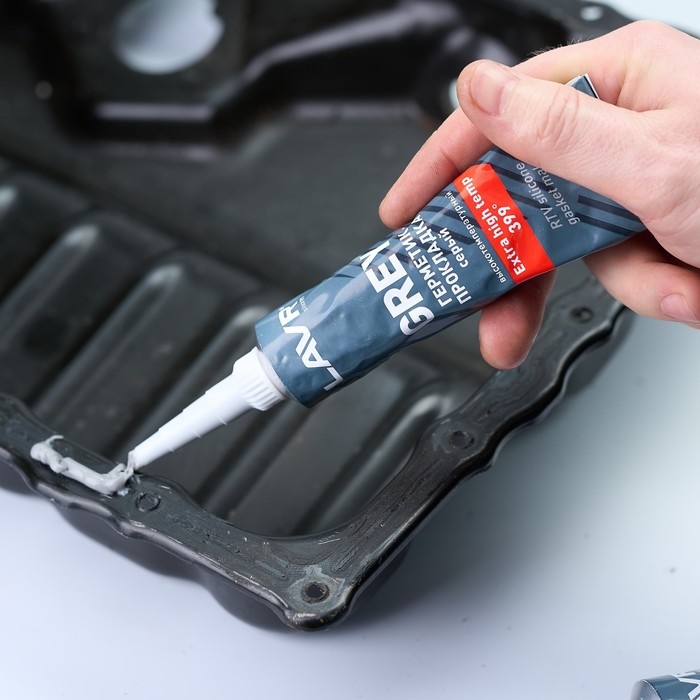 Серый высокотемпературный герметик надежно герметизирует тяжелонагруженные узлы и соединения, электрические детали и датчики.