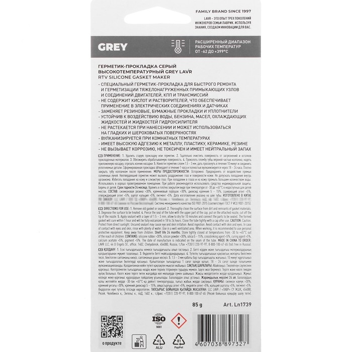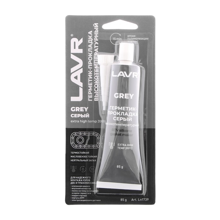 Герметик-прокладка GREY LAVR RTV, серый, высокотемпературный, силиконовый, 85 г, Ln1739