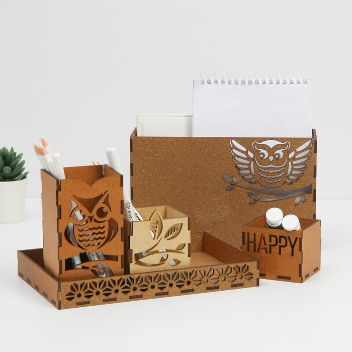 Настольный органайзер для хранения канцелярии – универсальное изделие, которое поможет без лишних хлопот организовать пространство на рабочем столе. Отлично впишется в интерьер и позволит сделать вашу работу максимально продуктивной, ведь удобное рабочее место – залог успешной деятельности. А еще подобный органайзер станет отличным подарком для людей, которые ценят практичные презенты и любят порядок во всем. Товар поставляется в разобранном виде. При сборке необходимо использовать клей.