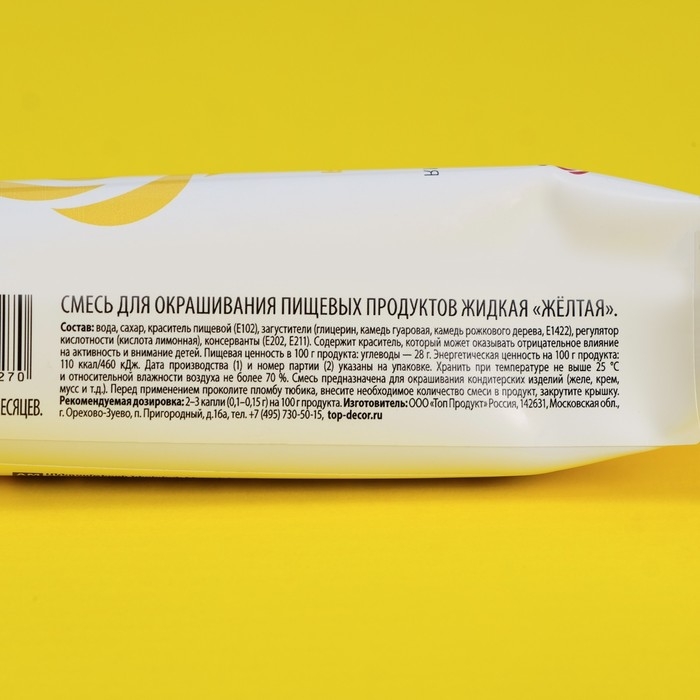 Пищевой краситель Top Decor гелевый, жёлтый, 100 г