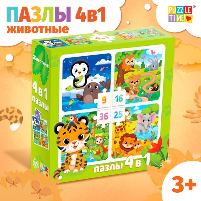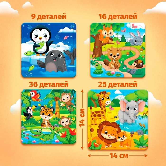 Пазлы 4 в 1 «Лесные жители», 4, 6, 9, 12 элементов