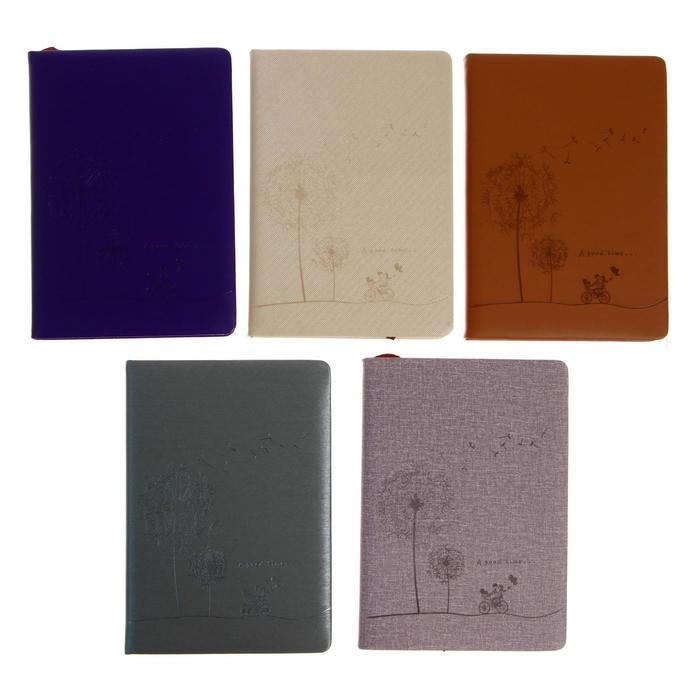 Ежедневник недатированный А5, 100 листов в клетку, на резинке, обложка кожзам, МИКС