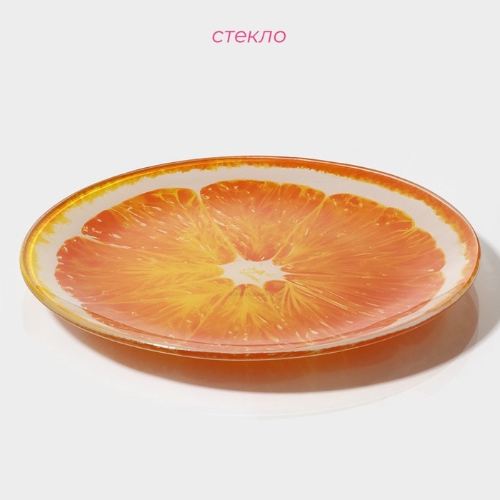 Тарелка стеклянная Доляна «Сочный апельсин», d=18 см, цвет оранжевый
