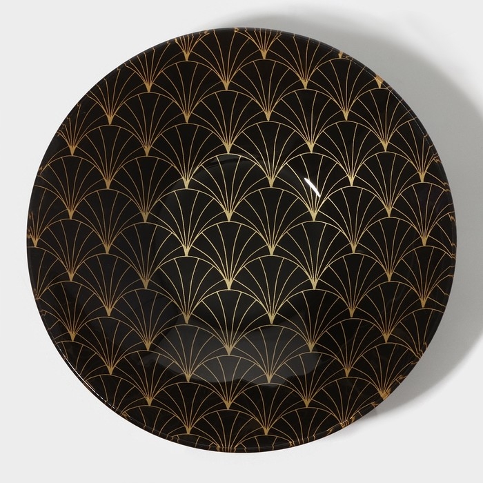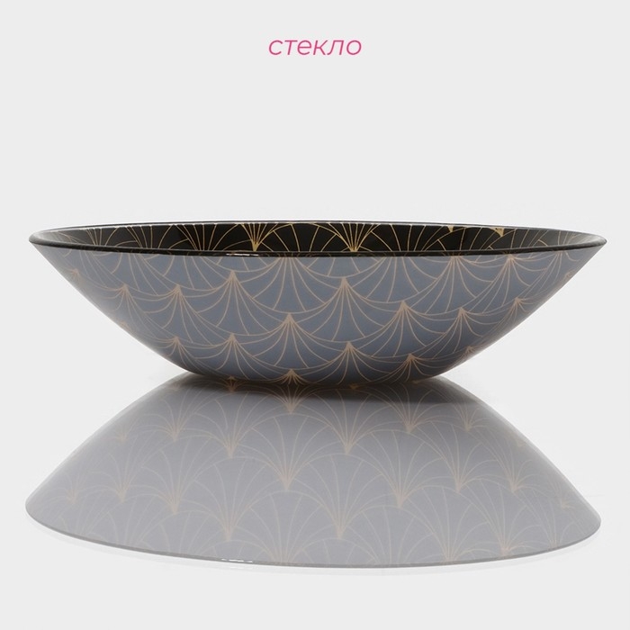 Салатник стеклянный Доляна «Золотое перо», 1.1 л, 22,5×5 см, цвет чёрный