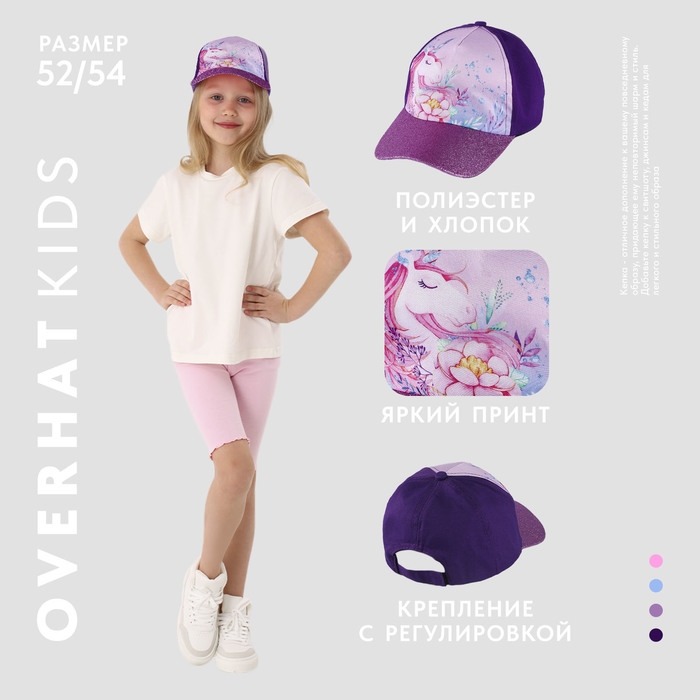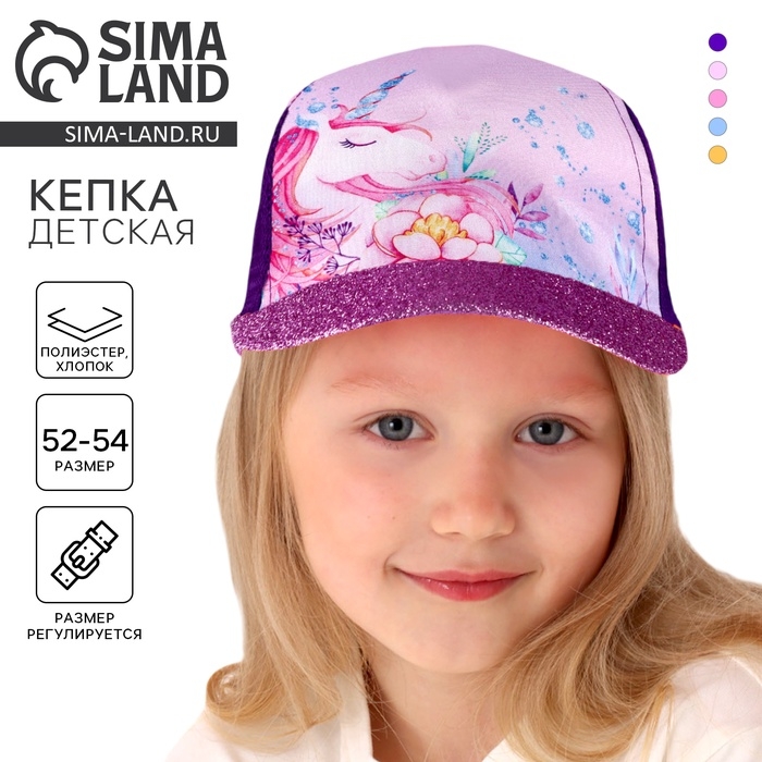 Кепка детская для девочки «Волшебный единорог», р-р. 52-54 , 5-7 лет
