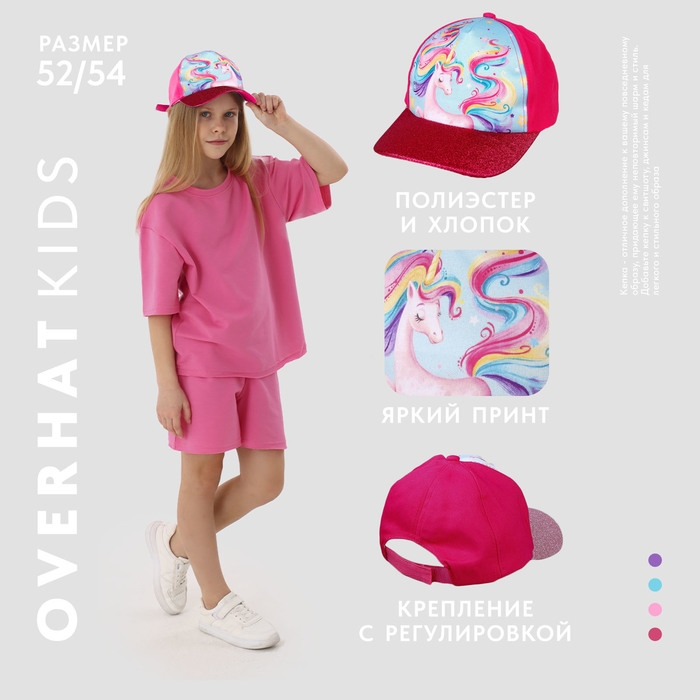 Кепка детская для девочки «Радужный единорог», р-р. 52-54, 5-7 лет