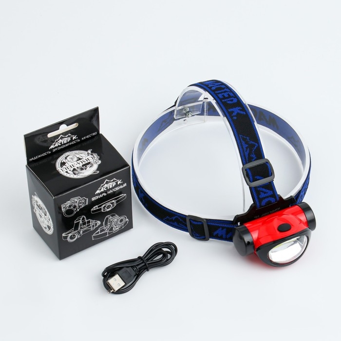 Фонарь налобный аккумуляторный "Мастер К.", 3 Вт, 800 mAh, 3.7 В, 100 лм, 1 режим, USB