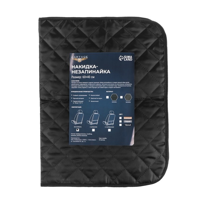 Накидка-незапинайка на спинку сиденья Cartage, оксфорд, ромб, 60 х 40 см, черный