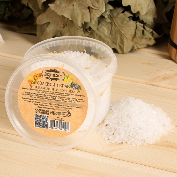 Солевой скраб "Добропаровъ" из белой каменной соли с маслом апельсина и травами, 550 гр