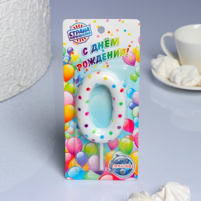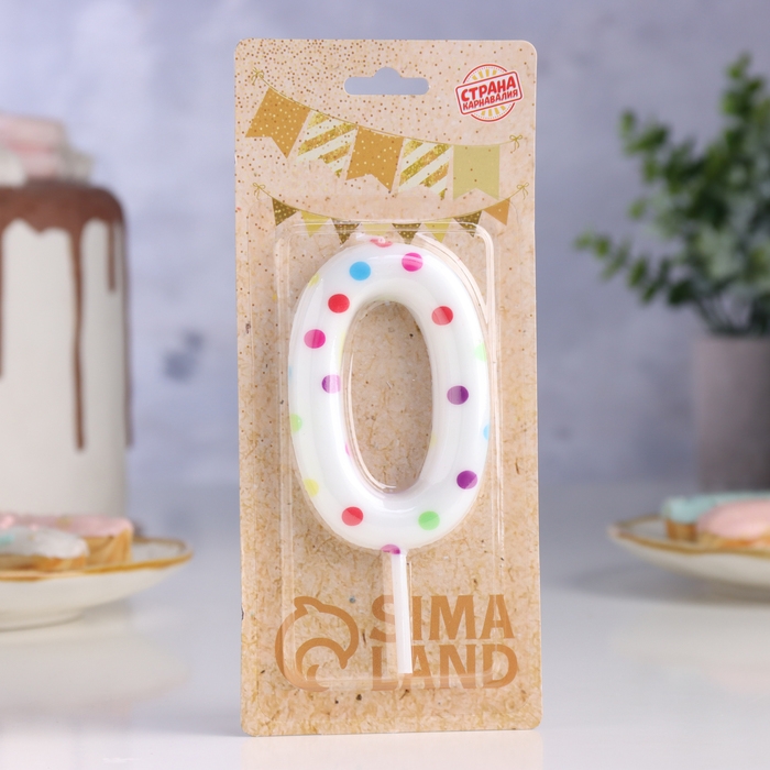 Свеча в торт на день рождения «Конфетти», цифра "0" , ГИГАНТ, 9 см