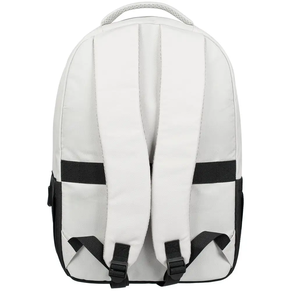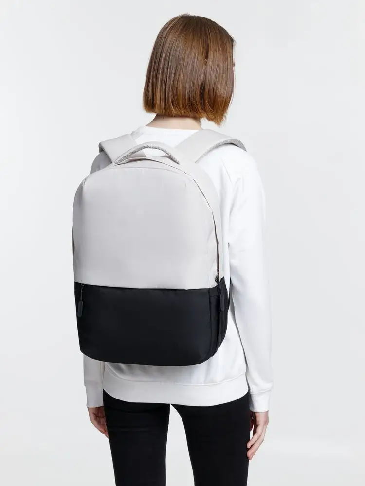 Двухцветное исполнение с темным низом и более светлым верхом, с одной стороны, помогает рюкзаку дольше сохранять опрятный внешний вид, а с другой — позволяет активнее и контрастнее выделить логотип компании.