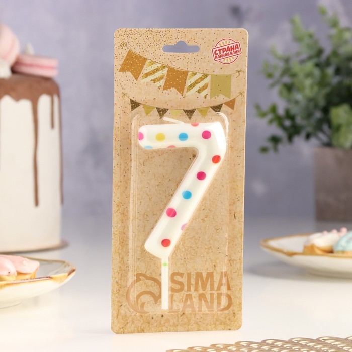 Свеча в торт на день рождения «Конфетти», цифра "7" , ГИГАНТ, 9 см