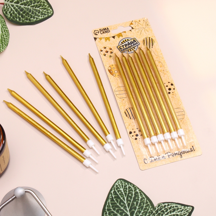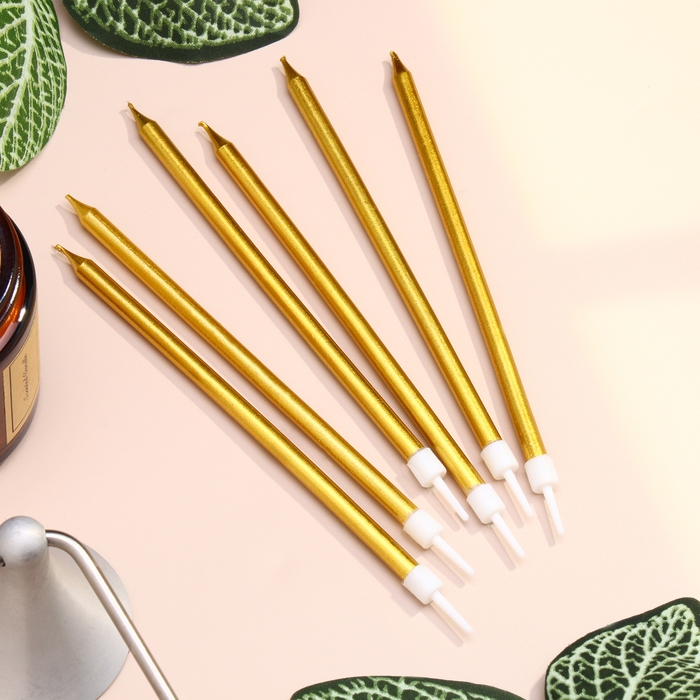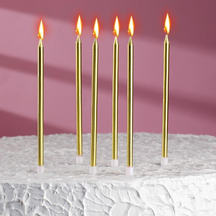 Свечи в торт "Ройс", 6 шт, высокие, 13 см, золотой металлик