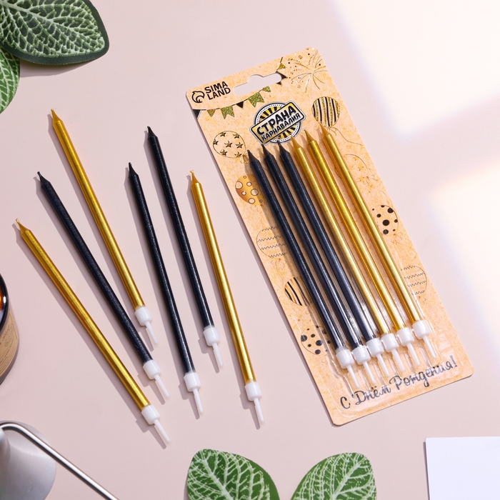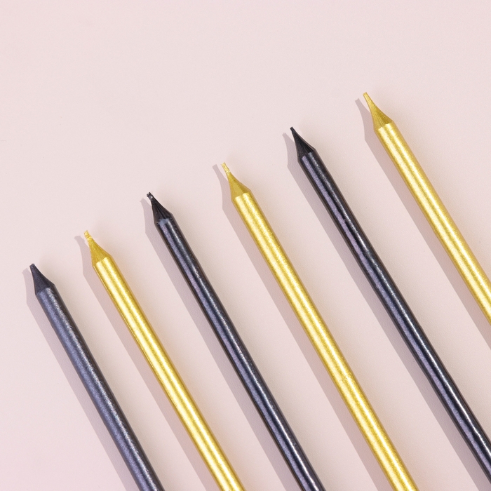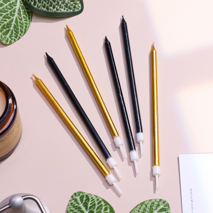 Свечи в торт "Ройс", 6 шт, высокие, 13 см, чёрные и золотые