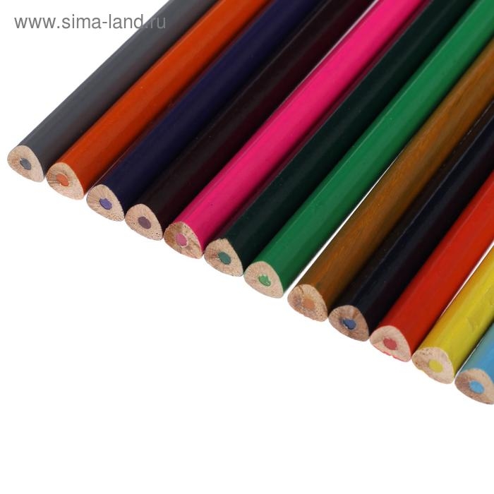 Карандаши 12 цветов, корпус деревянный, треугольный