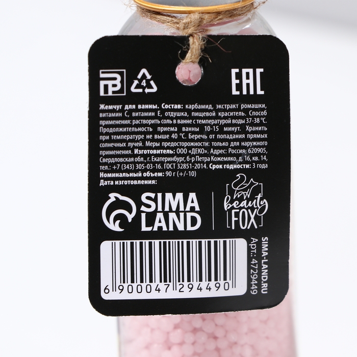 Жемчуг для ванны соляной Unicorn tears, 90 г, аромат ванили, BEAUTY FОХ