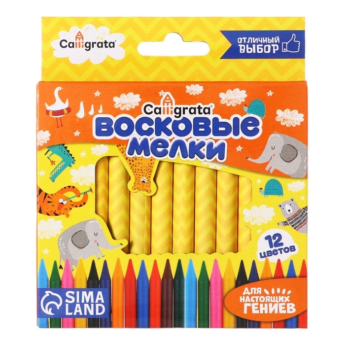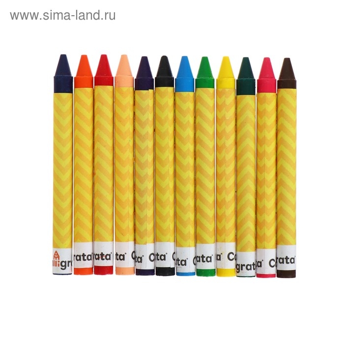 Карандаши восковые 12 цветов, 93 х 8 мм, Calligrata, в картонной коробе