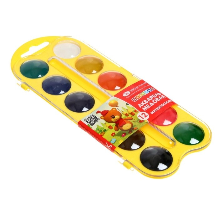 Акварель медовая ЗХК "Цветик", 12 цветов, в пластиковом пенале, без кисти