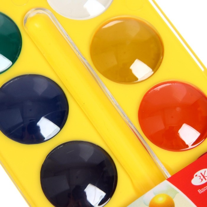 Краски легко берутся на кисть, смешиваются и разносятся по бумаге. Рисунок остается ярким даже после высыхания. Крышку пластиковой упаковки можно использовать в качестве палитры.