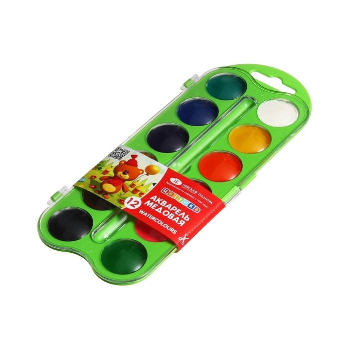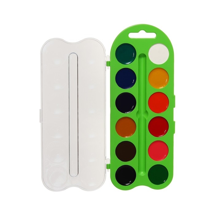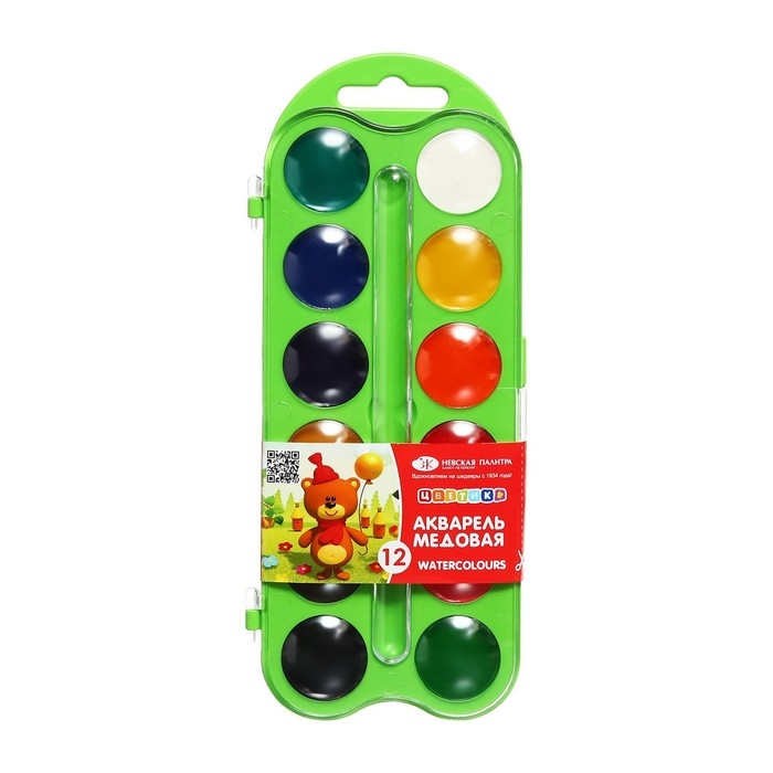 Акварель медовая ЗХК "Цветик", 12 цветов, в пластиковом пенале, без кисти