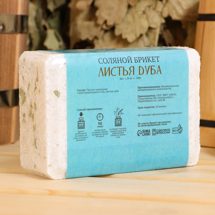 Соляной брикет "Листья дуба", 1,35 кг "Добропаровъ"