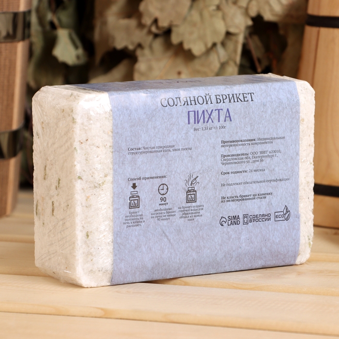 Применение: нагревайте брикет на печи не менее 90 минут, затем поддайте на него горячей воды. Соль наполнит воздух бани ионами, тем самым поможет снять усталость, улучшить кровообращение и общее самочувствие.