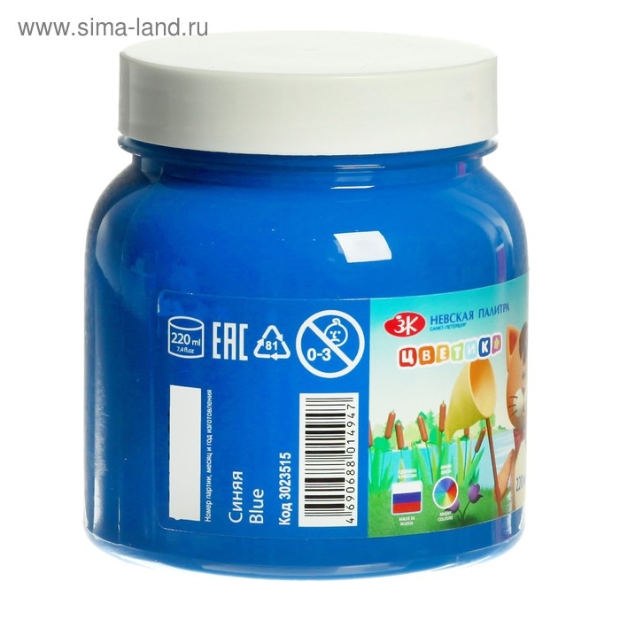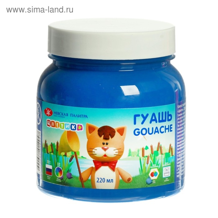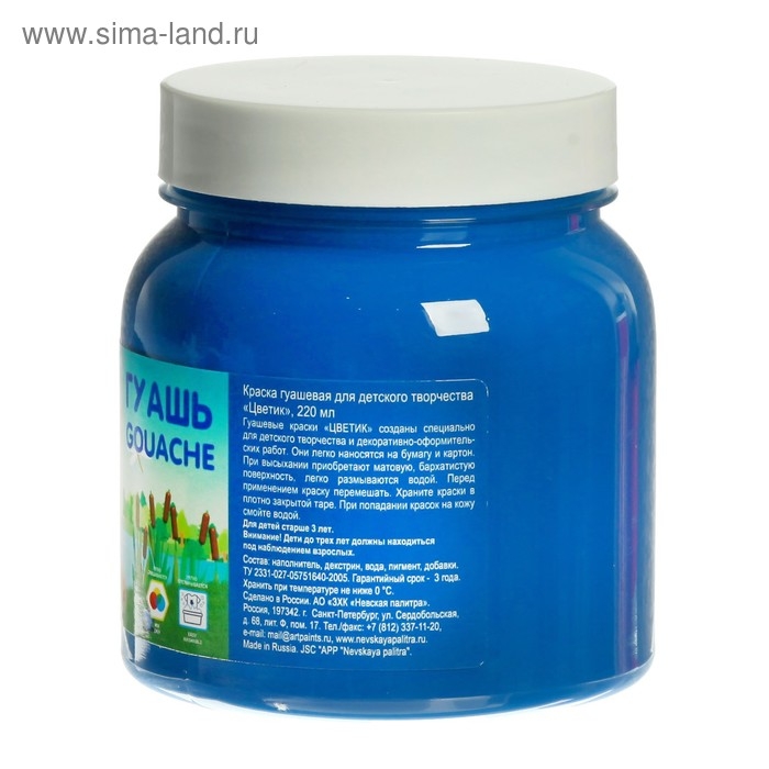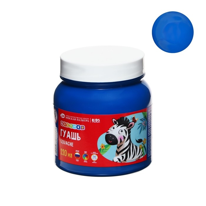 Гуашь в банке 220 мл, ЗХК "Цветик" синяя (3023515)