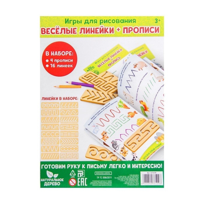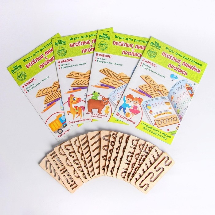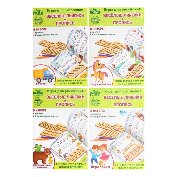 В наборе 4 прописи и 16 линеек. Внутри вы найдете много игровых заданий, которые выполнять будет интересно и весело. Воспользуйтесь линейкой, чтобы нарисовать линии. Трафарет позволяет оттачивать правильные движения рук ребенка при письме. Это способствует более быстрому обучению письму, а также формированию красивого почерка.