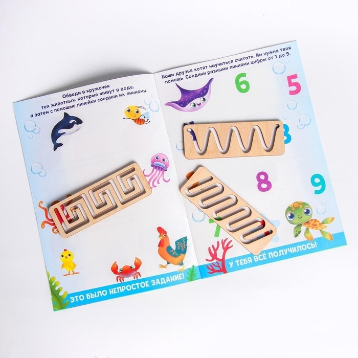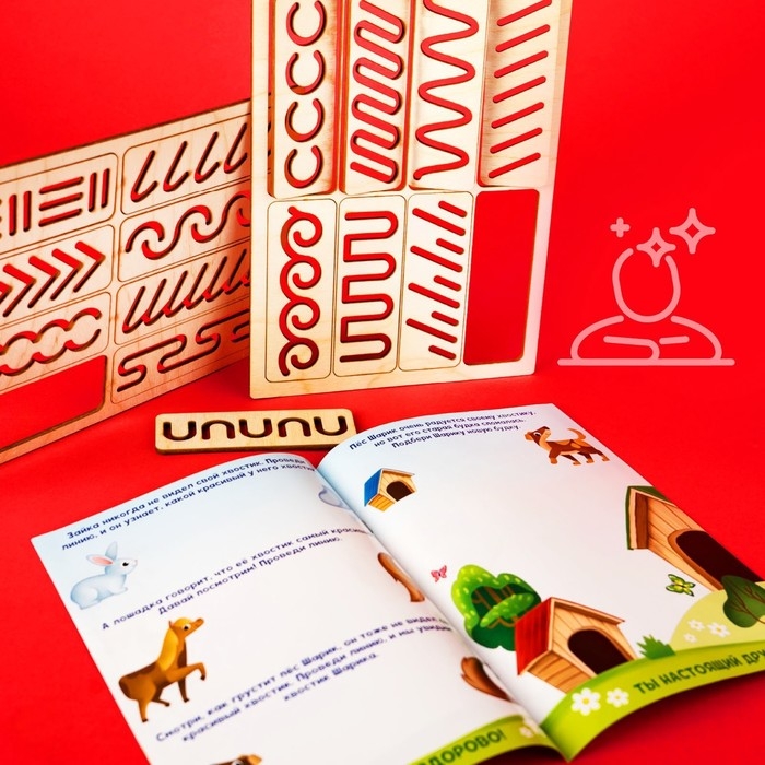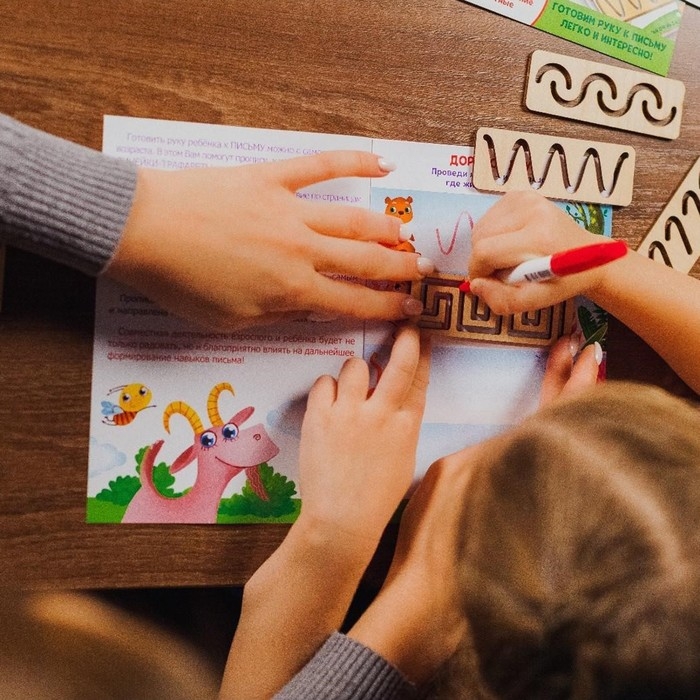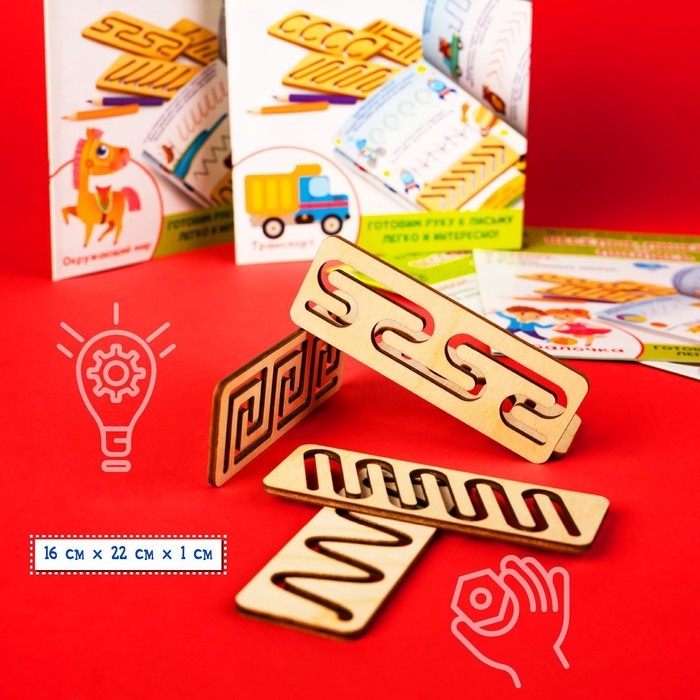 - После занятий с данным набором можно переходить к простым прописям, в которых ребёнок может рисовать линии самостоятельно без трафарета