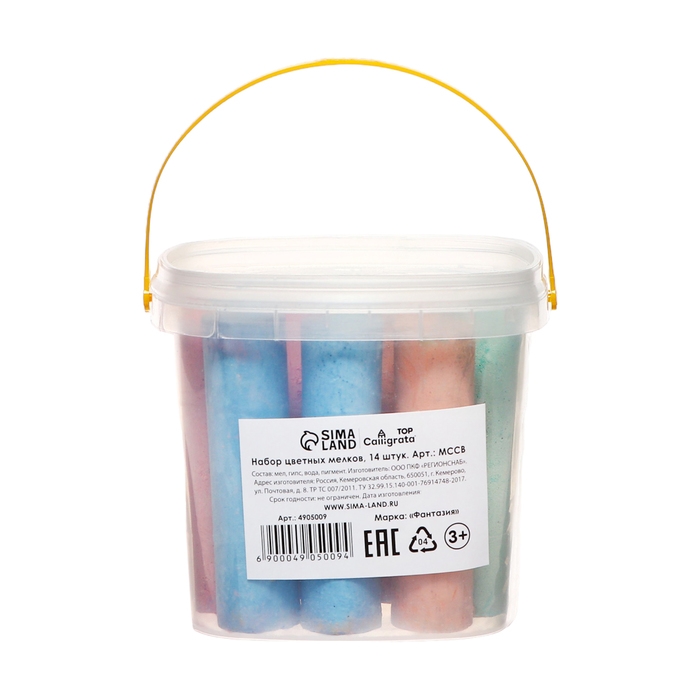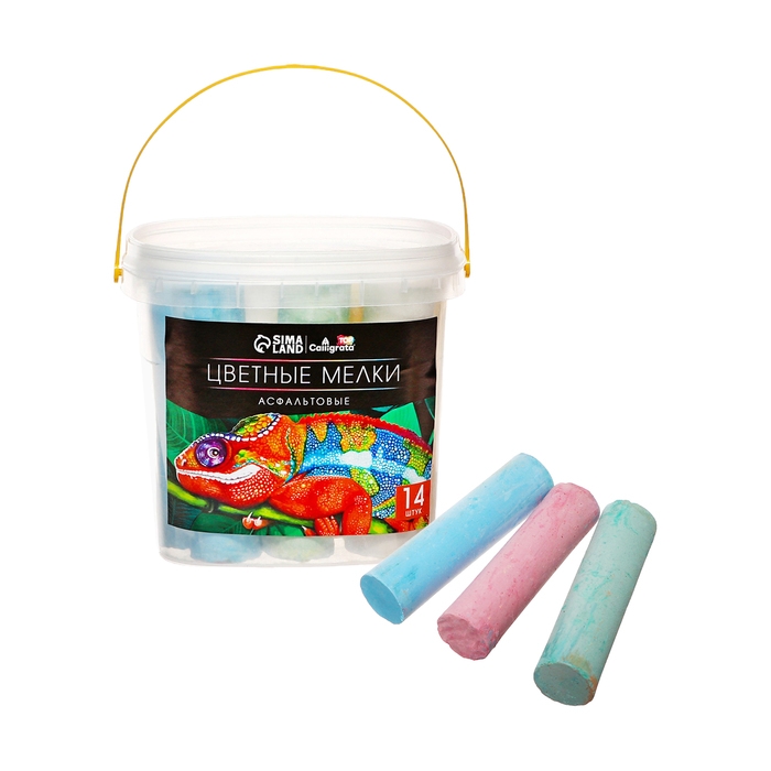 Мелки цветные для асфальта 14 штук, 7 цветов Calligrata TOP, цилиндр, длина 80 +/-мм, диаметр - 20мм