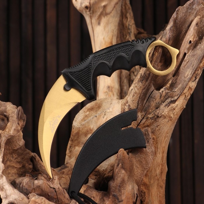 Нож-керамбит "Коготь орла" 20см, клинок 90мм/3,1мм, золотистый