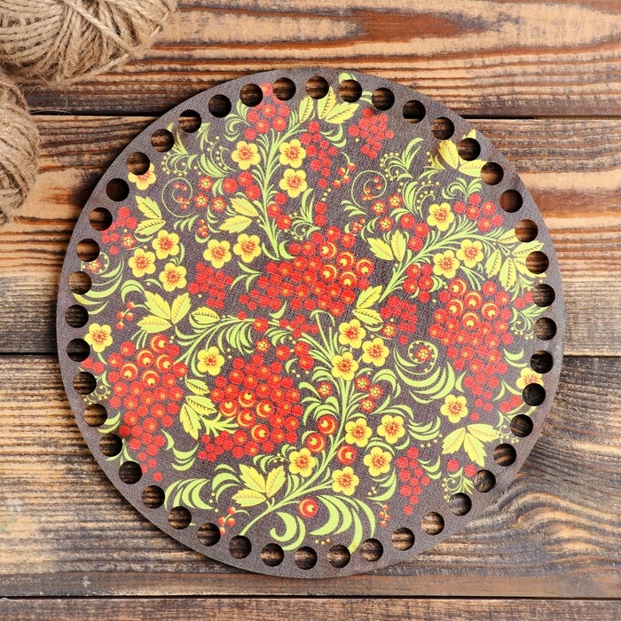Заготовка для вязания "Хохлома", донышко фанера 3 мм, 20 см, d=9мм
