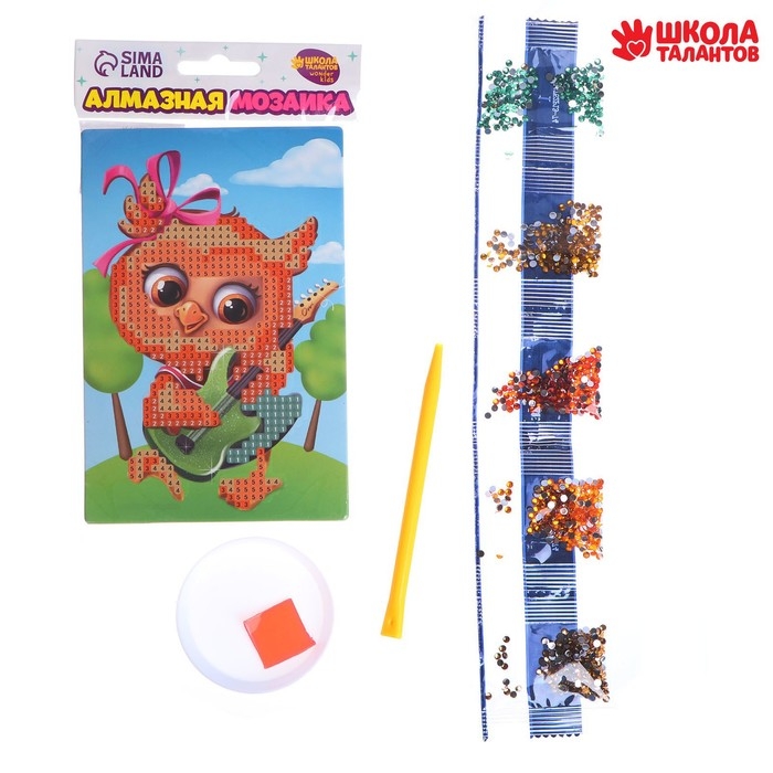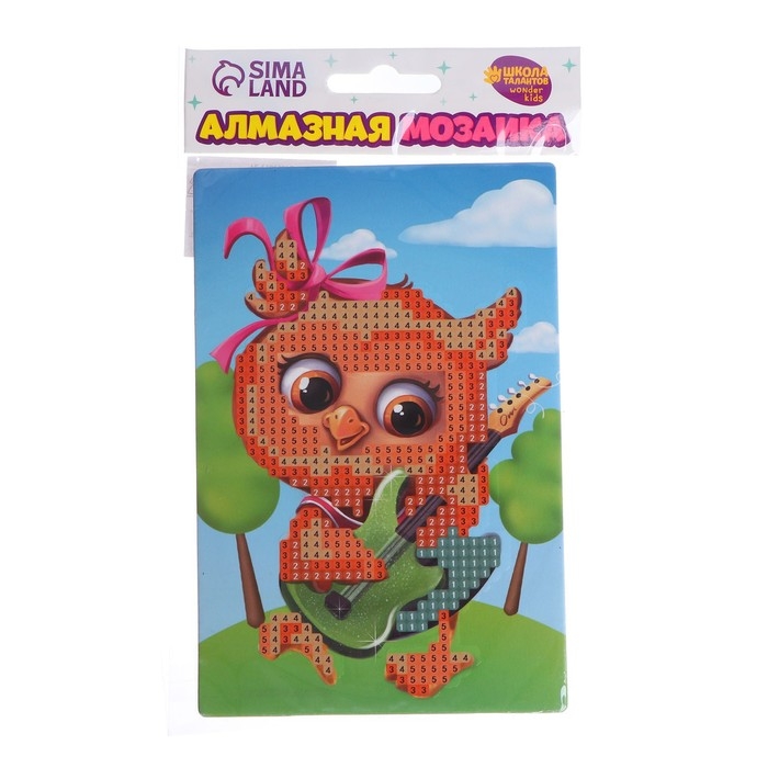 Алмазная мозаика с частичным заполнением для детей «Совушка с гитарой», 10 х 15 см