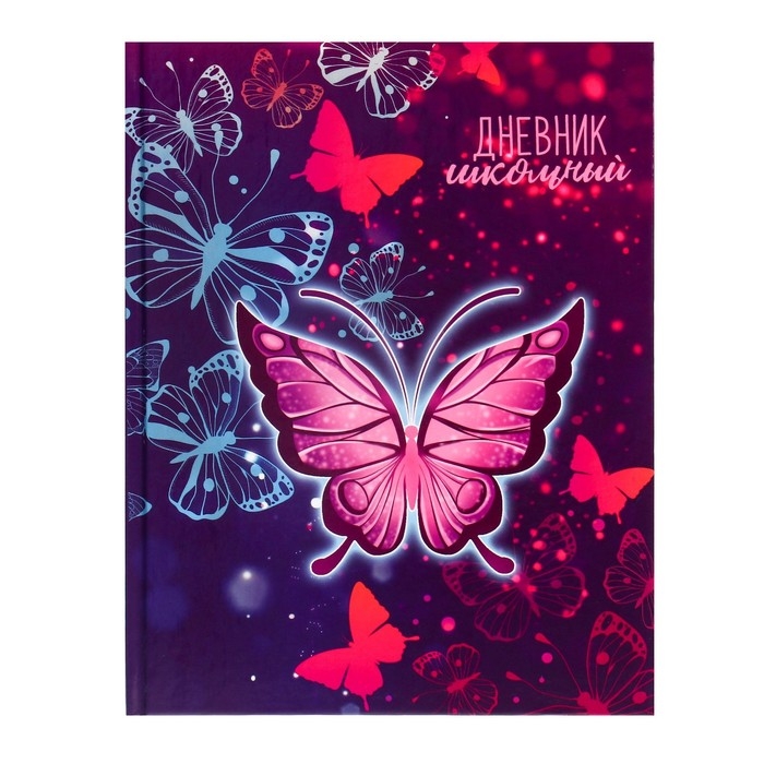Дневник для 1-4 классов, "Бабочки. Неон", твердая обложка 7БЦ, глянцевая ламинация, 48 листов