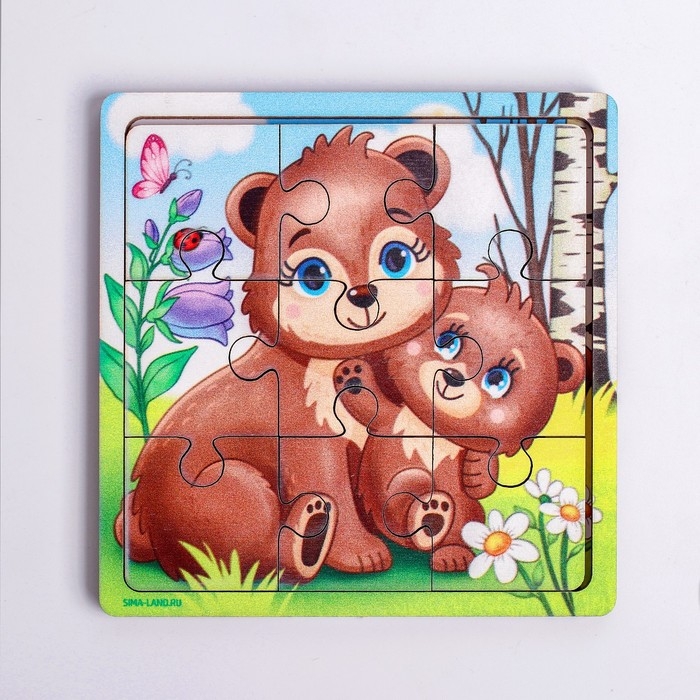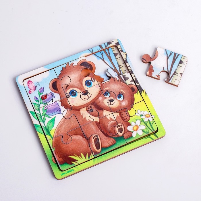 Пазл «Медведица и медвежонок», 9 деталей