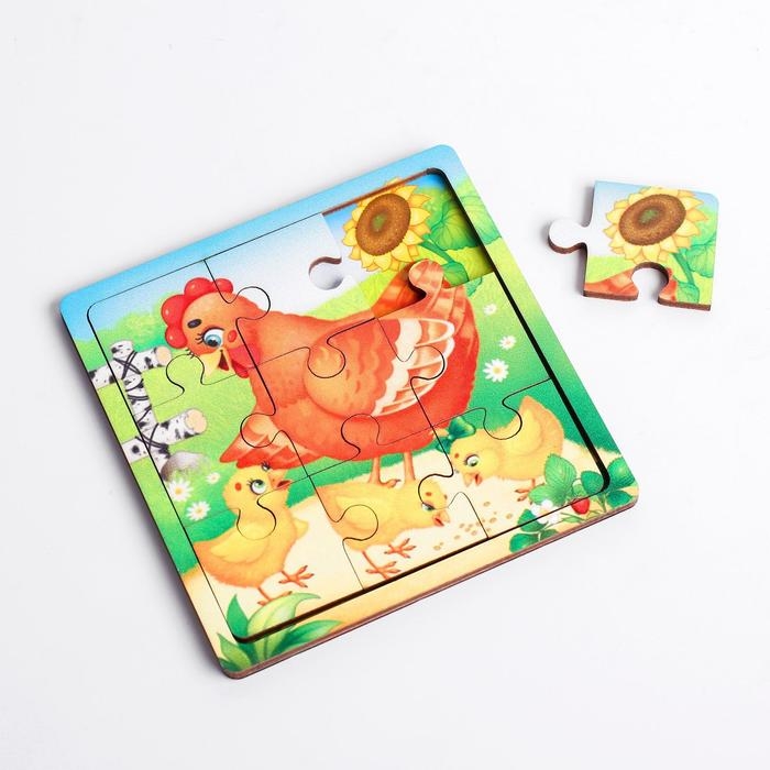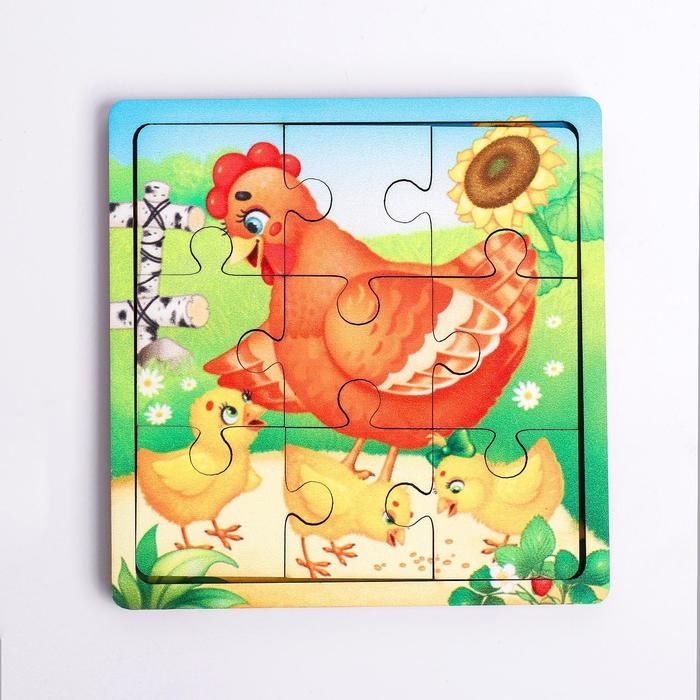Пазл «Курица с цыплятами», 9 деталей