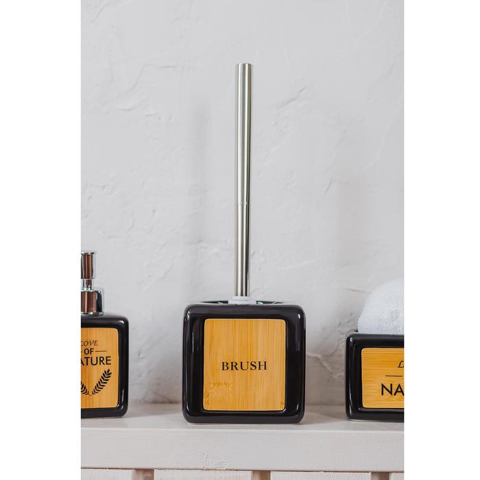 Ёрш для унитаза с подставкой «Стиль», 400 мл, 12×10×36 см, цвет чёрный