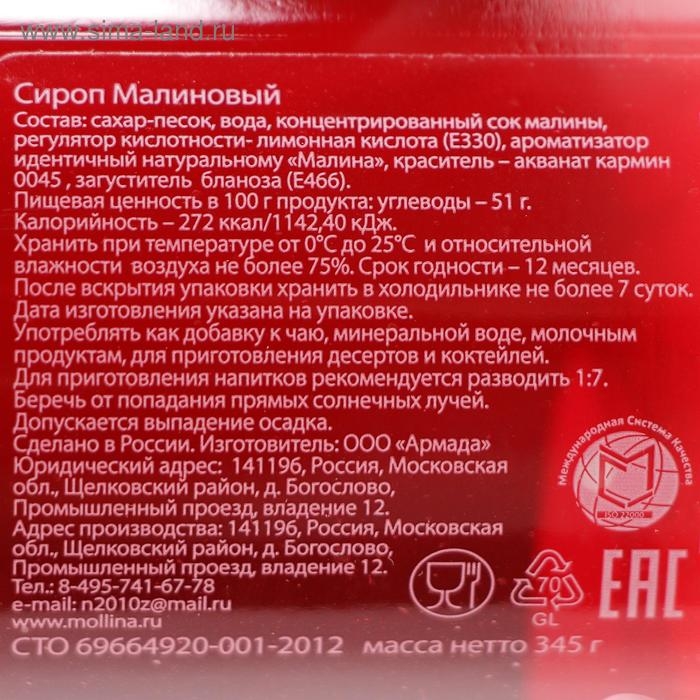 Сироп Mollina «Малина», 345 г
