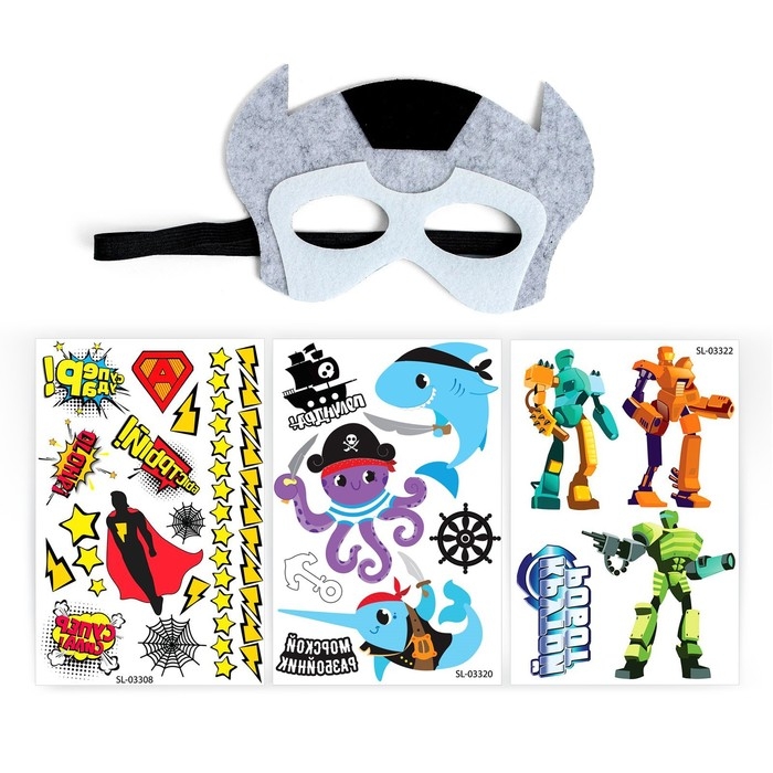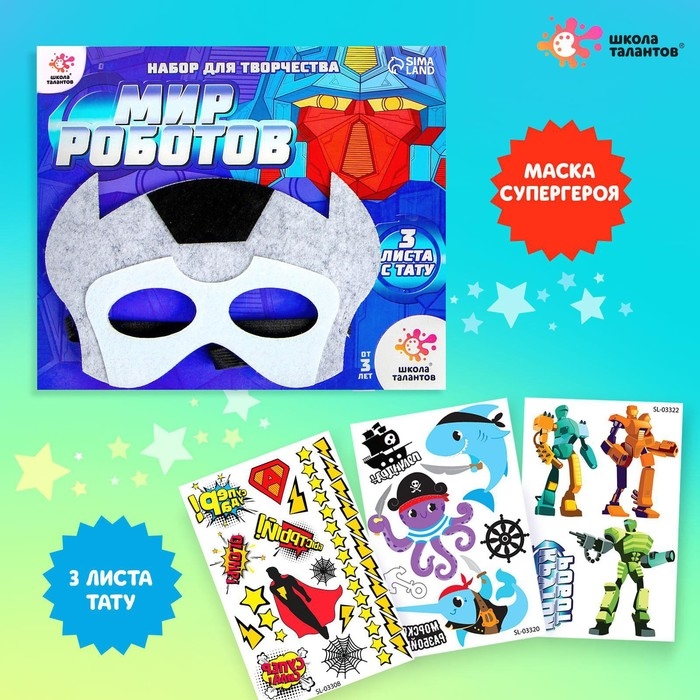 Набор детских татуировок + маска супергероя «Мир роботов»