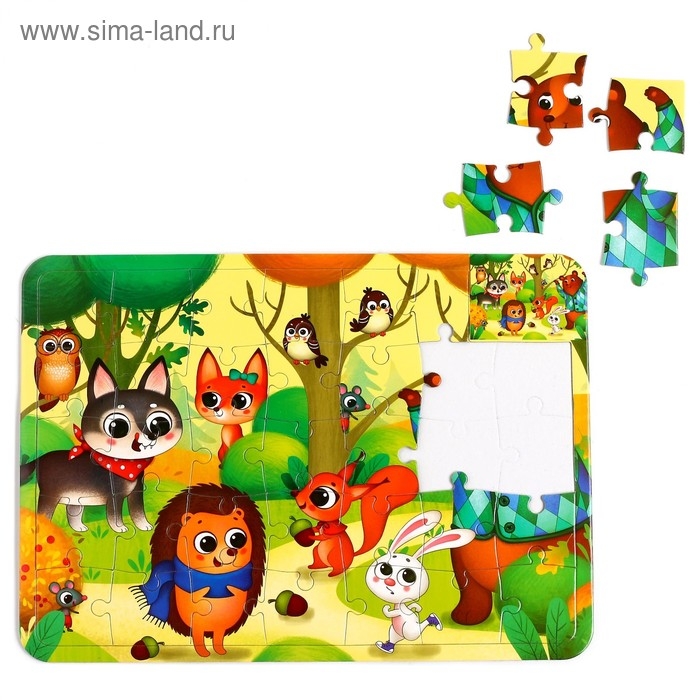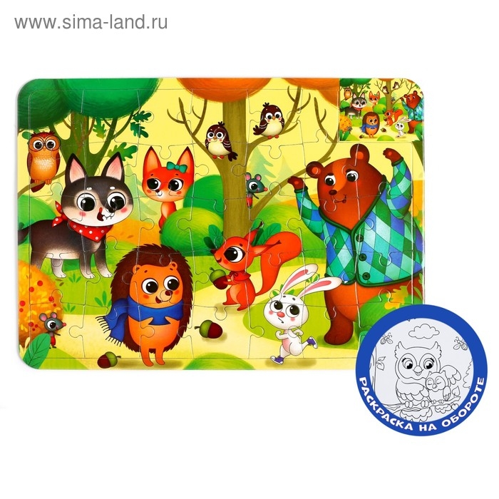Пазл в рамке «Лесные зверята», 34 детали + раскраска